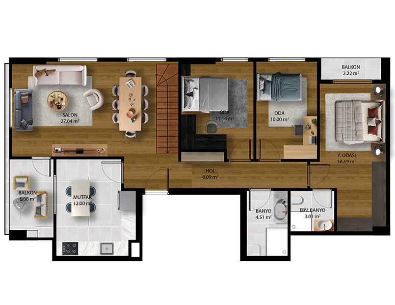 2+1, 3+1 ve dubleks daire seçeneklerinden oluşan toplam 120 bağımsız bölüm; ferah yaşam alanları, konfor odaklı planlama ve yüksek kalite anlayışıyla tasarlanmıştır. Gölboyu Prime, yalnızca bir konut projesi değil; güven, konfor ve uzun vadeli değer arayanlar için ayrıcalıklı bir yaşam ve yatırım fırsatıdır.
